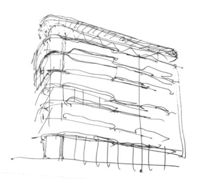 建筑立面考究了山的光影變化,流線型的建筑形態(tài)帶來一種“矛盾”的美,強(qiáng)調(diào)的是建筑與資源和生活的結(jié)合。形成了地景與人類活動(dòng)相融合的奇妙場(chǎng)景,在一系列的事物所形成的氛圍中創(chuàng)造出了可被感知的空間與建筑實(shí)體。