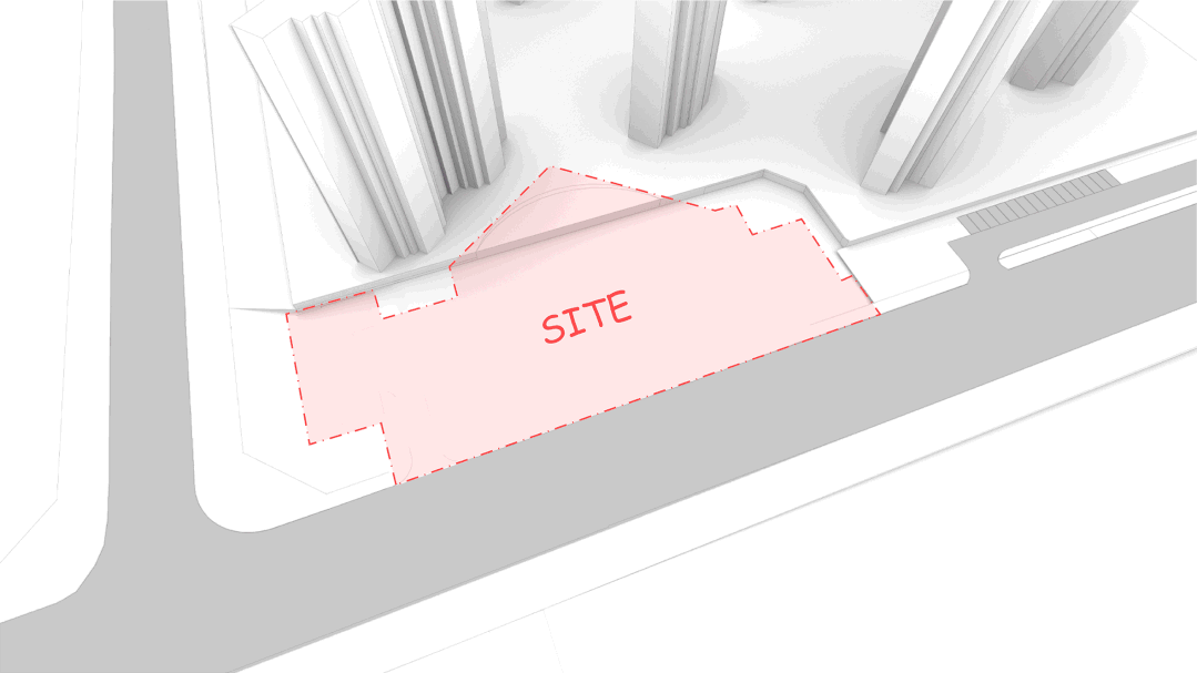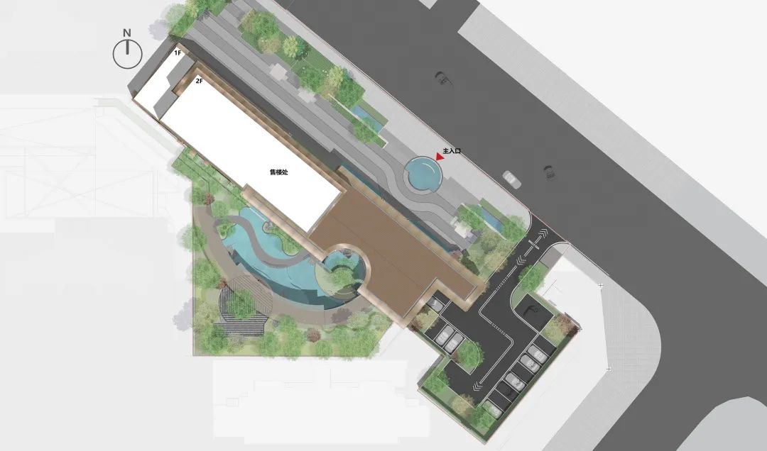 基地?fù)碛薪?1m的超大尺度沿街展示面,設(shè)計以三個體量互相疊合的方式形成建筑主體,通過拉長城市界面來增強(qiáng)對區(qū)域的控制力。以強(qiáng)化歸家大門為出發(fā)點,建筑形體簡潔,以L型入口門廳體量作為刻畫重點。