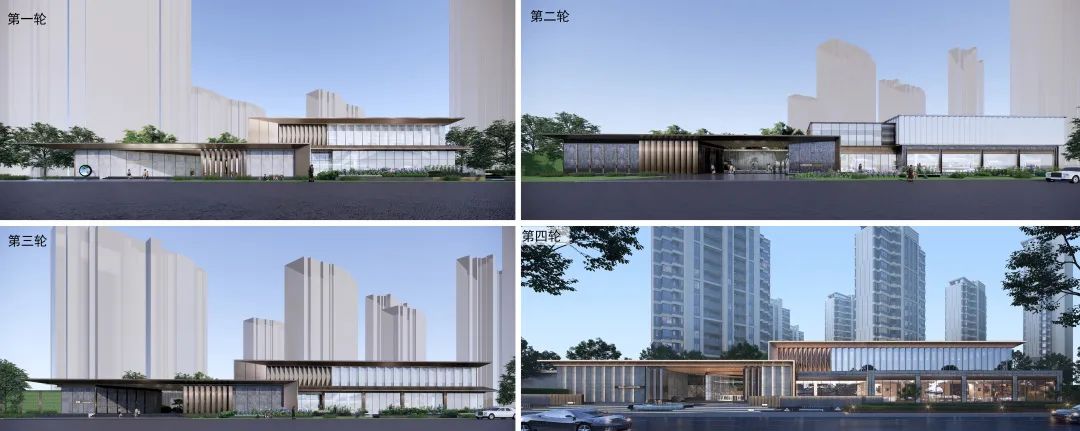 方案經(jīng)過了多輪推敲逐漸細(xì)化,入口采用斜廳向外開口的形式,如同“喇叭口”外寬內(nèi)窄,展示迎客之勢,豎向柱廊采用“梭”形狀陣列排布,確定基本造型體塊后,深化細(xì)節(jié)做法,在人感觸到的部位設(shè)計細(xì)膩,形成城市客廳的設(shè)計概念。
