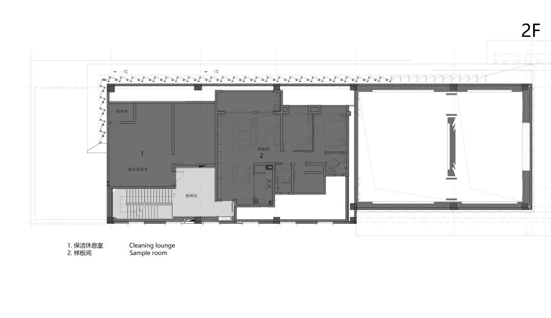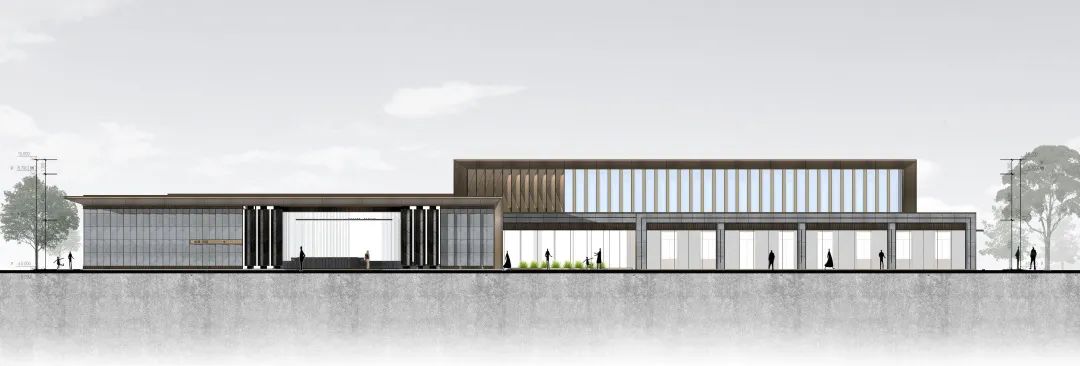 我們期望在這樣一個較長的城市界面塑造視覺亮點,作為項目于城市的亮相。建筑一層入口大門與二層反向L造型形成如同“飛鳥展翅”形成起飛之勢,給人留下了深刻的記憶點。