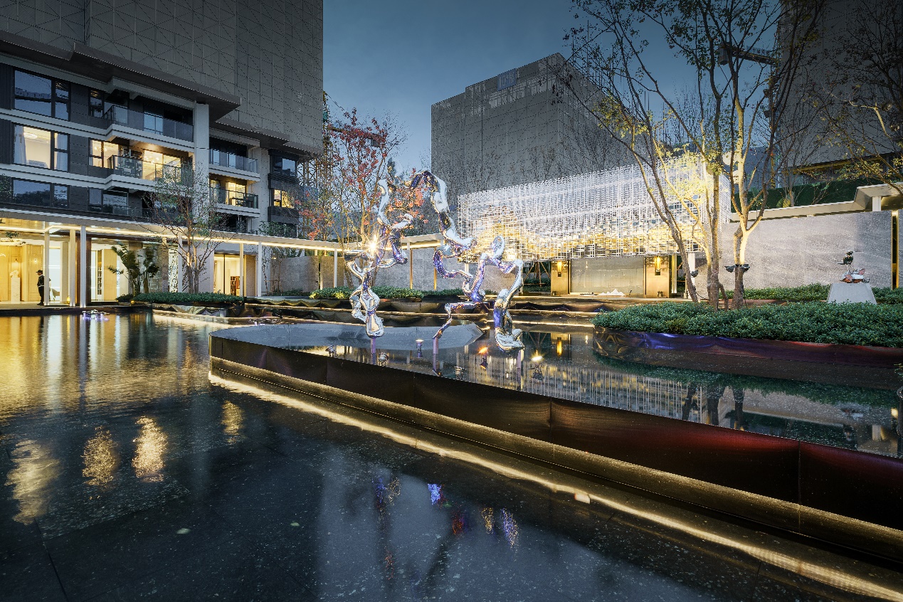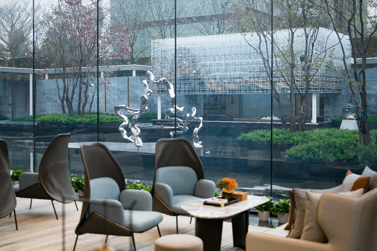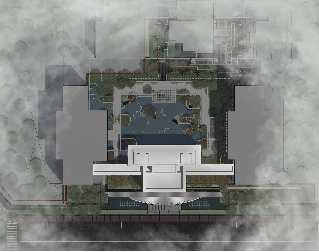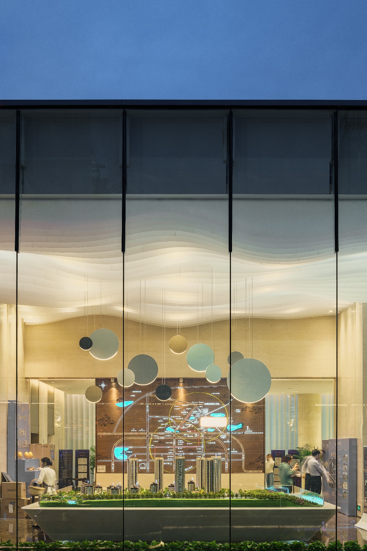 庭院是將建筑、山水、花木等元素通過藝術(shù)手法組合而成的建筑綜合體。“向心而筑”這種建筑空間形成了獨特的文化魅力,用來營造單體與群體空間。內(nèi)向性空間布局由其功能決定,在整個項目交通最便利,最佳昭示面的位置布置了展示中心,不僅僅達到了形象與功能的平衡,也達到了效率與體驗的完美結(jié)合。