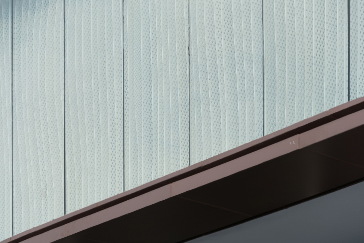 參數(shù)化設(shè)計的柵格外表皮幕墻,表達了云的律動,以靜寫動,非簡單的云的形象。很多設(shè)計習(xí)慣于把具體的形狀映射到立面上,而本案中設(shè)計師將形轉(zhuǎn)化為像,將云千姿百態(tài)變化的瞬間凝固在這幕墻之上。