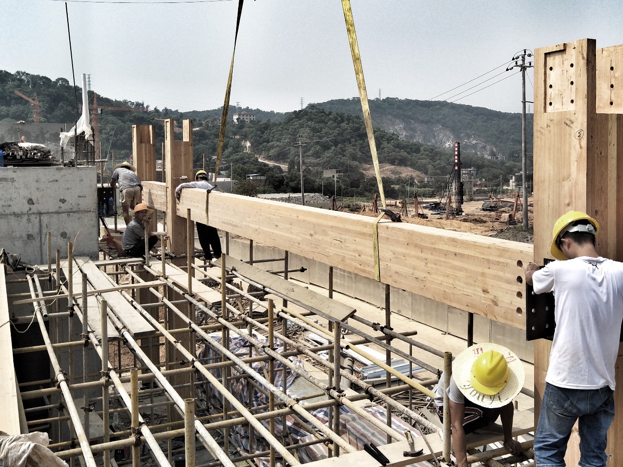 若用原本的鋼結(jié)構(gòu)網(wǎng)架屋頂所需施工周期為2個月,而膠合木施工團隊僅用半個月就完成所有骨架的搭建。且30米面寬的大廳,大跨度,精準(zhǔn)加工,變形少于6厘米,對幕墻與內(nèi)裝沒有任何破壞。