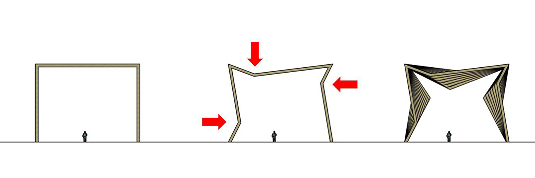 “門”型構(gòu)件形式結(jié)合折坡和書籍的形式變化