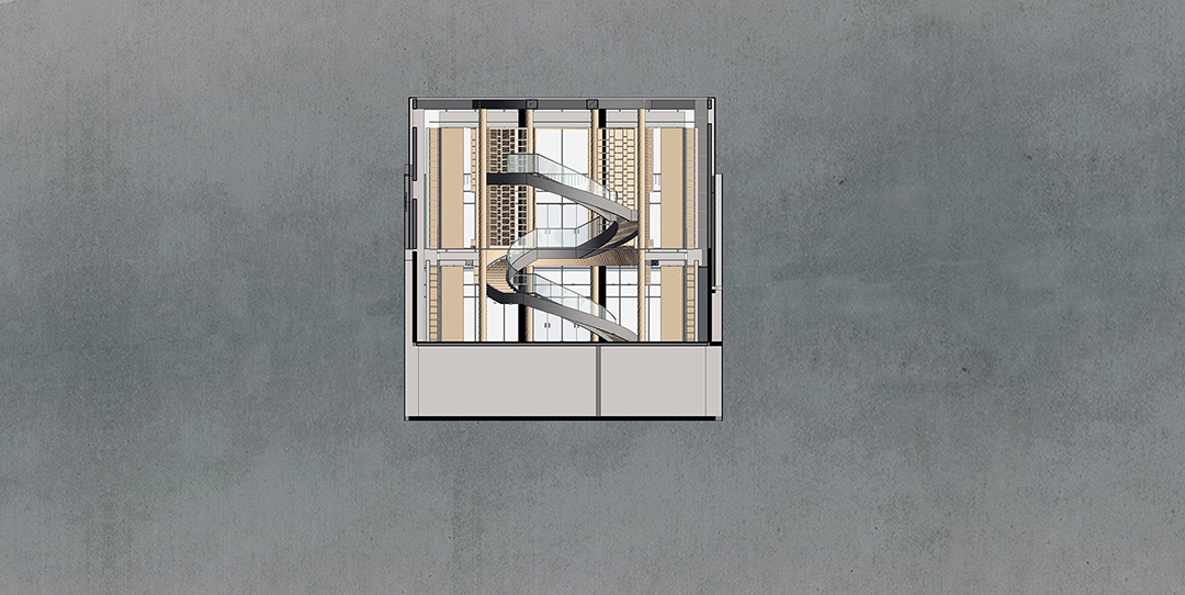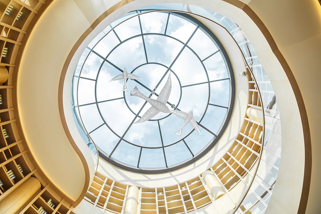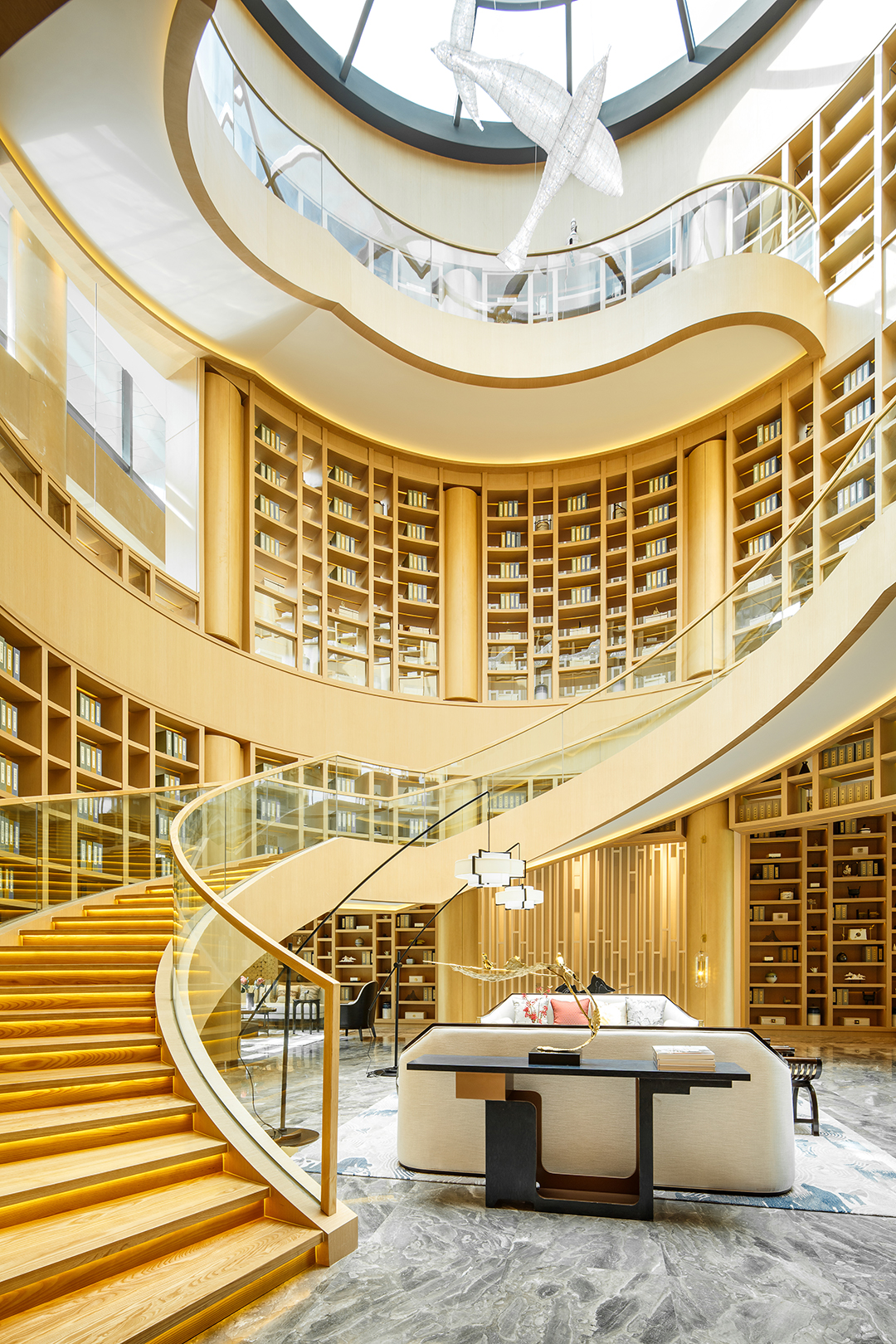設(shè)計師將書院定義成一個能讓人閱讀、思考、安靜下來的場所,并希望成為閱讀者的場所記憶,生活方式通過書院的一呼一吸中不斷進(jìn)行新陳代謝。書院中旋轉(zhuǎn)迂回的樓梯,書架環(huán)繞,頂部引入自然光,呈現(xiàn)流動靈活卻有震撼力的空間,光線的變化還使讀者感受到時間的游走。