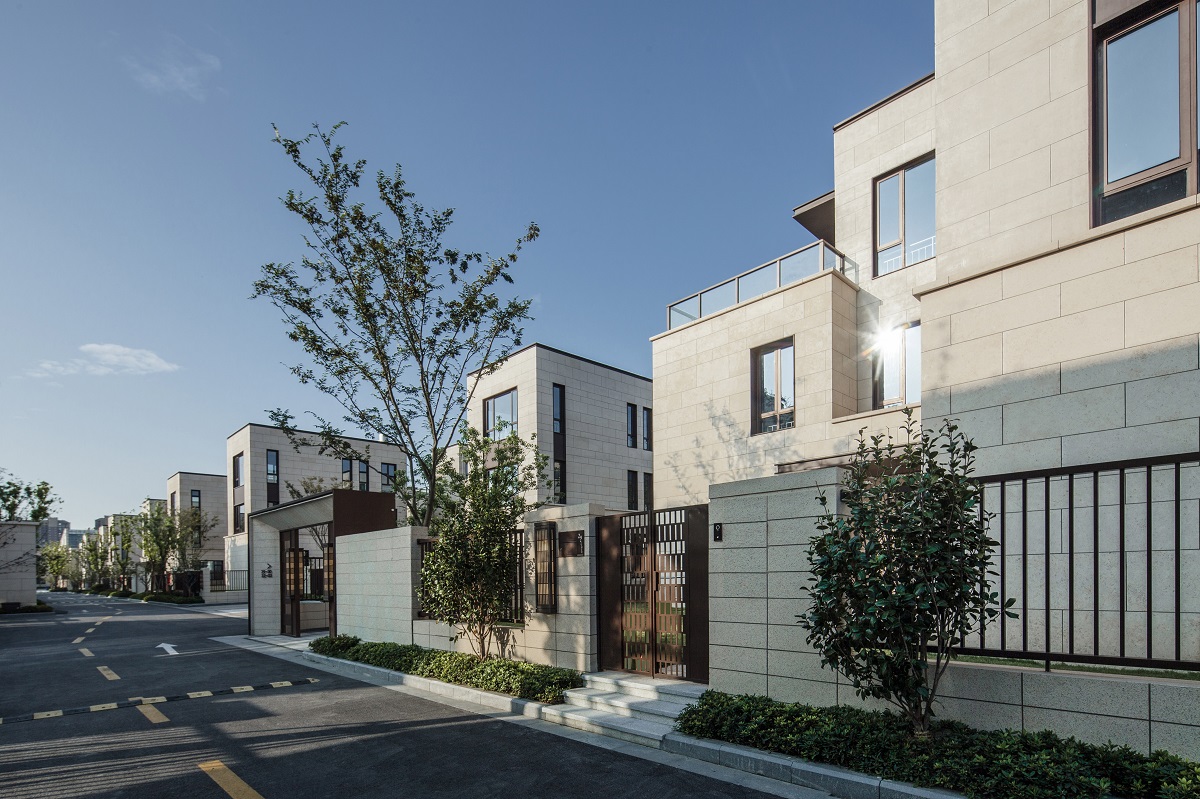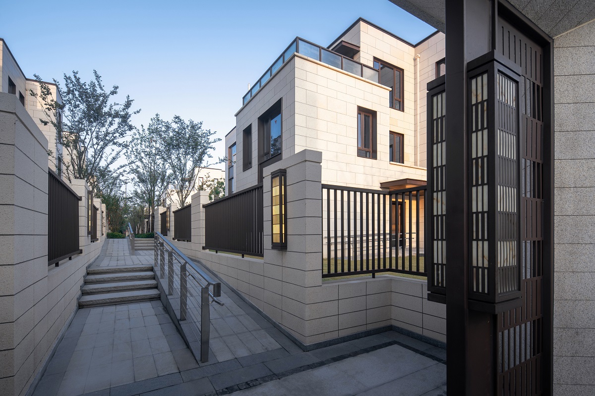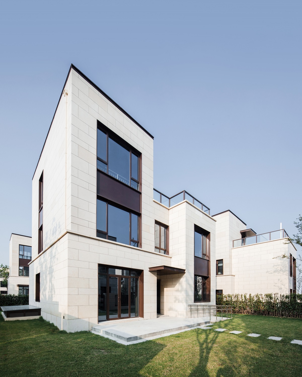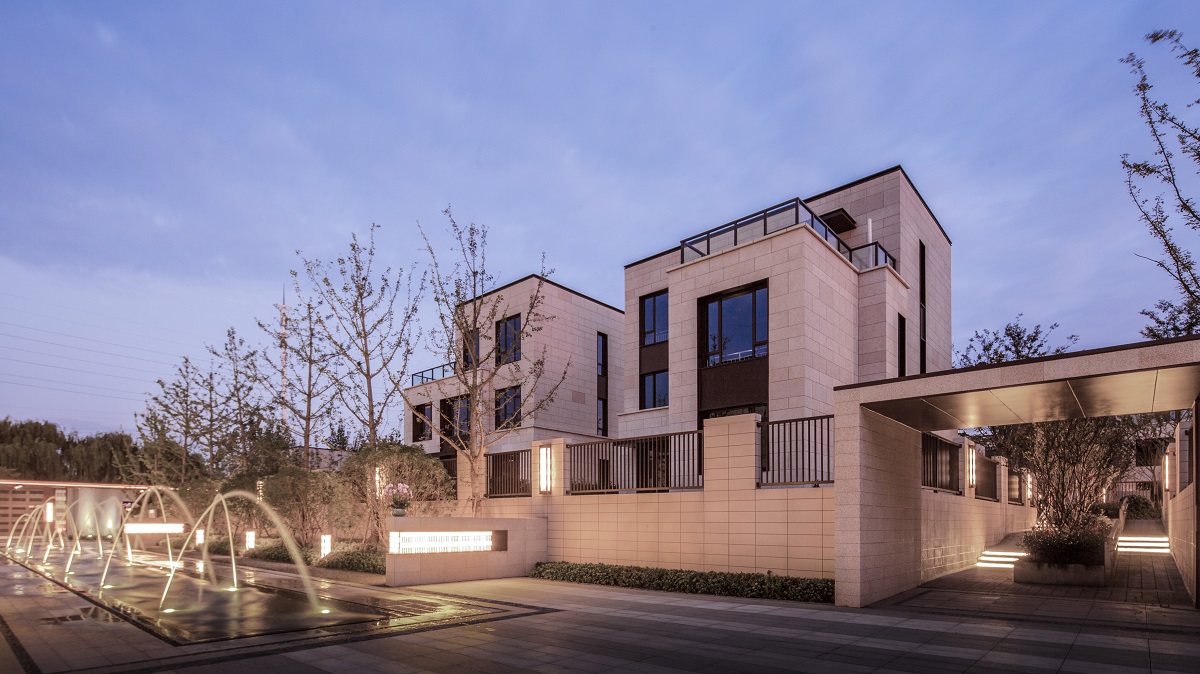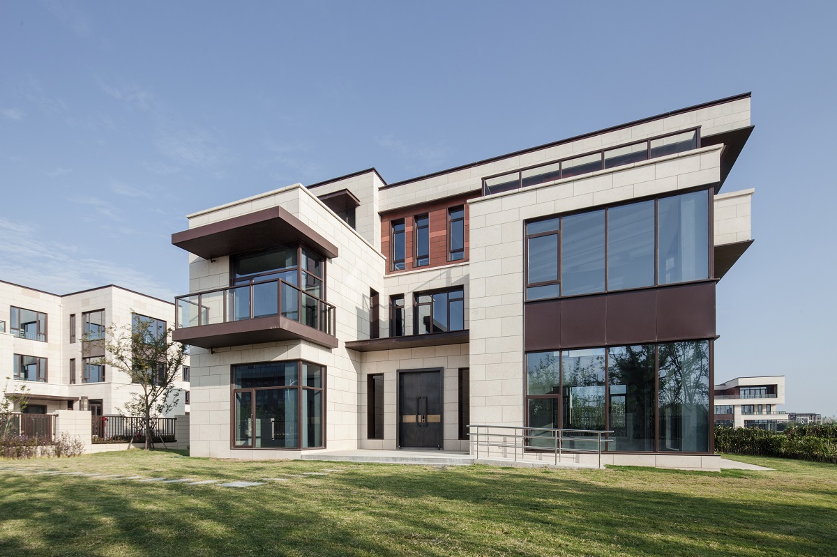 立面以現(xiàn)代手法為主,結(jié)合中式院落格局,穩(wěn)重大氣,整體感強。底層到局部采用石材,無大量裝飾性構(gòu)造,顯得格外的自然清雅,頂部則用仿石涂料。強調(diào)形式與功能的統(tǒng)一,豐富建筑美感,與自然環(huán)境的協(xié)調(diào)是生態(tài)美學(xué)的基本標準,才能使建筑真正 “生長”于環(huán)境中。