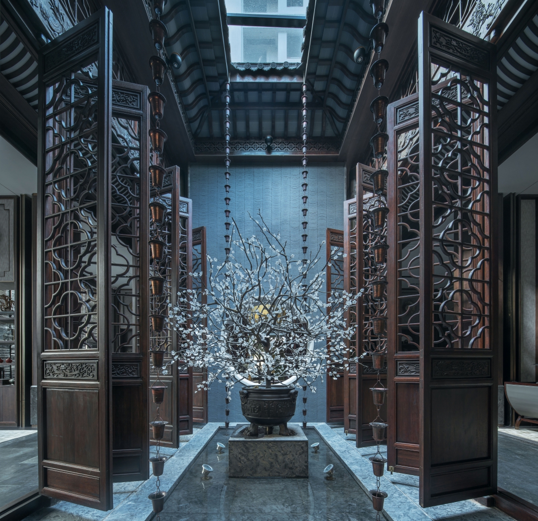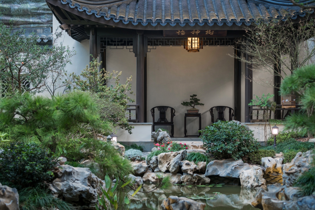 空間的“圍”與“透”對應(yīng)了寧靜與流動,形成一個內(nèi)向型的空間,反應(yīng)了特有的空間意識。正是這種有與無、動與靜、虛與實(shí)的關(guān)系,進(jìn)行重新演繹及全新的空間形式,演化出建筑豐富的空間內(nèi)涵,再現(xiàn)傳統(tǒng)空間意境的庭院空間。在有限的空間內(nèi)營造出無限的境界,使中國傳統(tǒng)建筑獨(dú)有一種耐人尋味的空間形式。