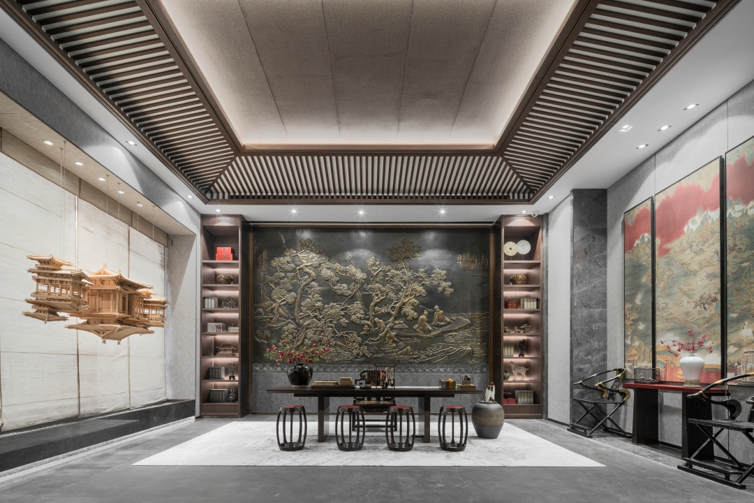 突破形的束縛,用現(xiàn)代設(shè)計(jì)手法隱含傳統(tǒng)文化的“意境”,讓新中式住宅具備“神韻”,追求意境的渲染,強(qiáng)調(diào)空間體驗(yàn)。使建筑空間“虛”與“實(shí)”呈現(xiàn)出相生相關(guān)、互滲互補(bǔ)的交互狀態(tài),契合傳統(tǒng)居住精神,感染人并給人以美學(xué)享受。