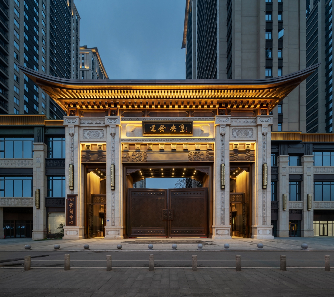 ▲在設(shè)計(jì)中引用“九五之尊”的概念,將沿街體塊劃分為九段,大門則處于正中“五”的位置。