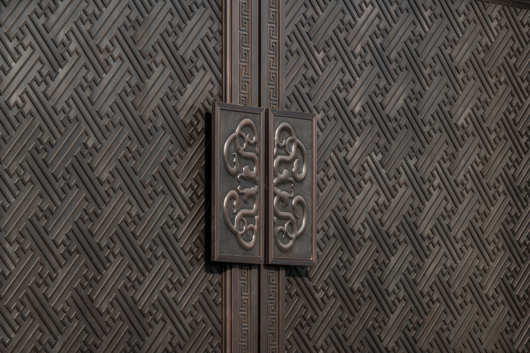 ▲?6m寬7m高的全銅大門,門上設(shè)置9個銅釘,與整體的設(shè)計(jì)理念相契合。