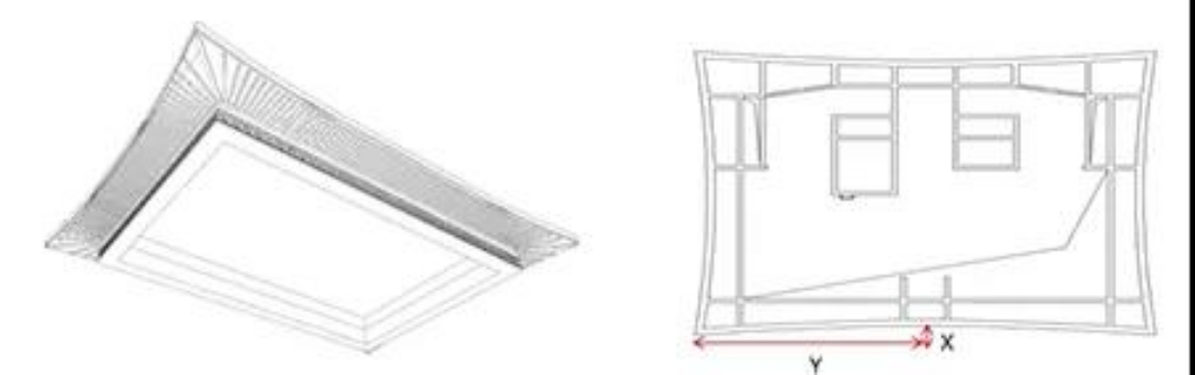 ▲大門頂部采用南方樣式起翹檐,弧形板為型材拼縫,減少拼縫處的接縫寬度,美化造型。