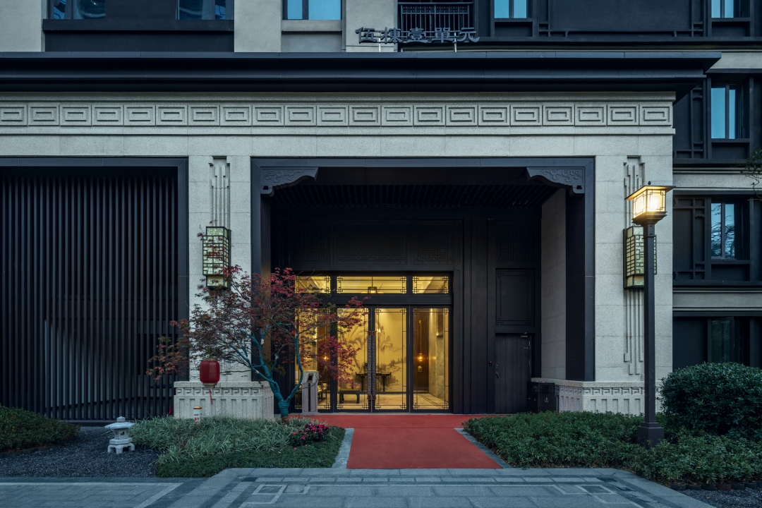 項(xiàng)目大門著重打造,謂之府門,門內(nèi)禮序,門外文明,入口大門以雙開官帽式大門設(shè)計(jì)。大門飾以鑲金匾額、門前造景對仗排布,遵循府邸禮序,以蓬勃大氣,造禮賓之景。整個入口采用中國哲學(xué)“至大中正,對稱中軸”的理念,展現(xiàn)大氣典雅的項(xiàng)目基調(diào)。