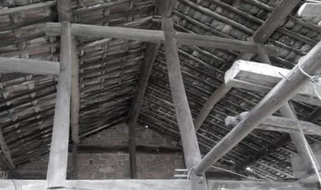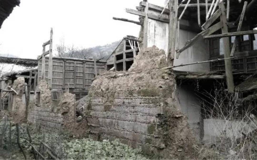建筑主體屬于典型的穿斗式木結(jié)構(gòu),外部墻體做法為中國歷史悠久的夯土墻技術(shù),從局部坍塌的墻面內(nèi)部還能看到暴露出的一根根水平方向的竹制“墻骨”。