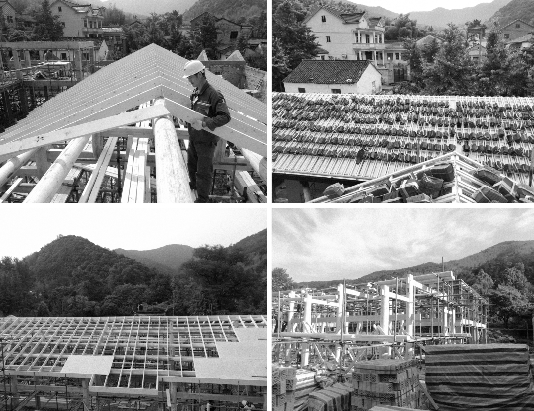 木結(jié)構(gòu)是歷史產(chǎn)生的瑰寶,蘊(yùn)含很重要的歷史和文化價(jià)值,穿斗式木結(jié)構(gòu)又是中國傳統(tǒng)建筑中最重要的結(jié)構(gòu)形式之一。拆下來的舊木料、舊磚瓦、花瓶式柱礎(chǔ)都被重新被利用,老宅內(nèi)的古樹根據(jù)景觀布局進(jìn)行移植栽種。這次的復(fù)原,運(yùn)用了現(xiàn)代木結(jié)構(gòu)技術(shù),使用鋼構(gòu)連接件替換了傳統(tǒng)的技術(shù),受力可以參與參數(shù)化計(jì)算,結(jié)構(gòu)整體更加穩(wěn)定及持久。