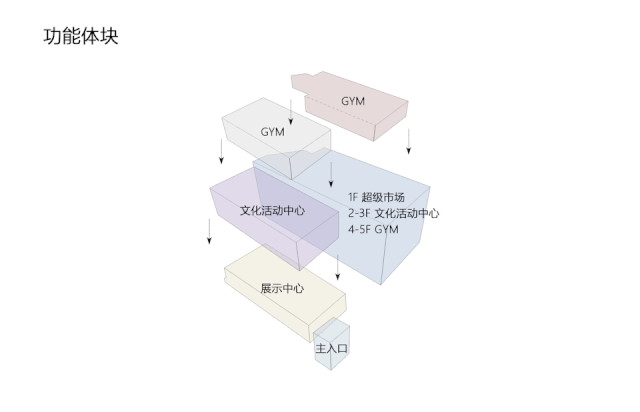 本案分別由五個(gè)大小不一的盒子堆疊而成,采用積木式體塊穿插的形式,讓每個(gè)盒子相互咬合增強(qiáng)了形體的透視效果,各部分體塊各顯獨(dú)立,卻又緊密相連。同時(shí)化解了大體量建筑帶來(lái)的沉重與壓抑感,強(qiáng)調(diào)建筑體塊與內(nèi)部功能的有效結(jié)合。設(shè)計(jì)師在街角處以退讓的方式強(qiáng)調(diào)入口,開(kāi)展與周邊形成相適應(yīng)與平衡的共存關(guān)系,同時(shí)也充分的利用建筑用地,創(chuàng)建額外的戶(hù)外公共空間。