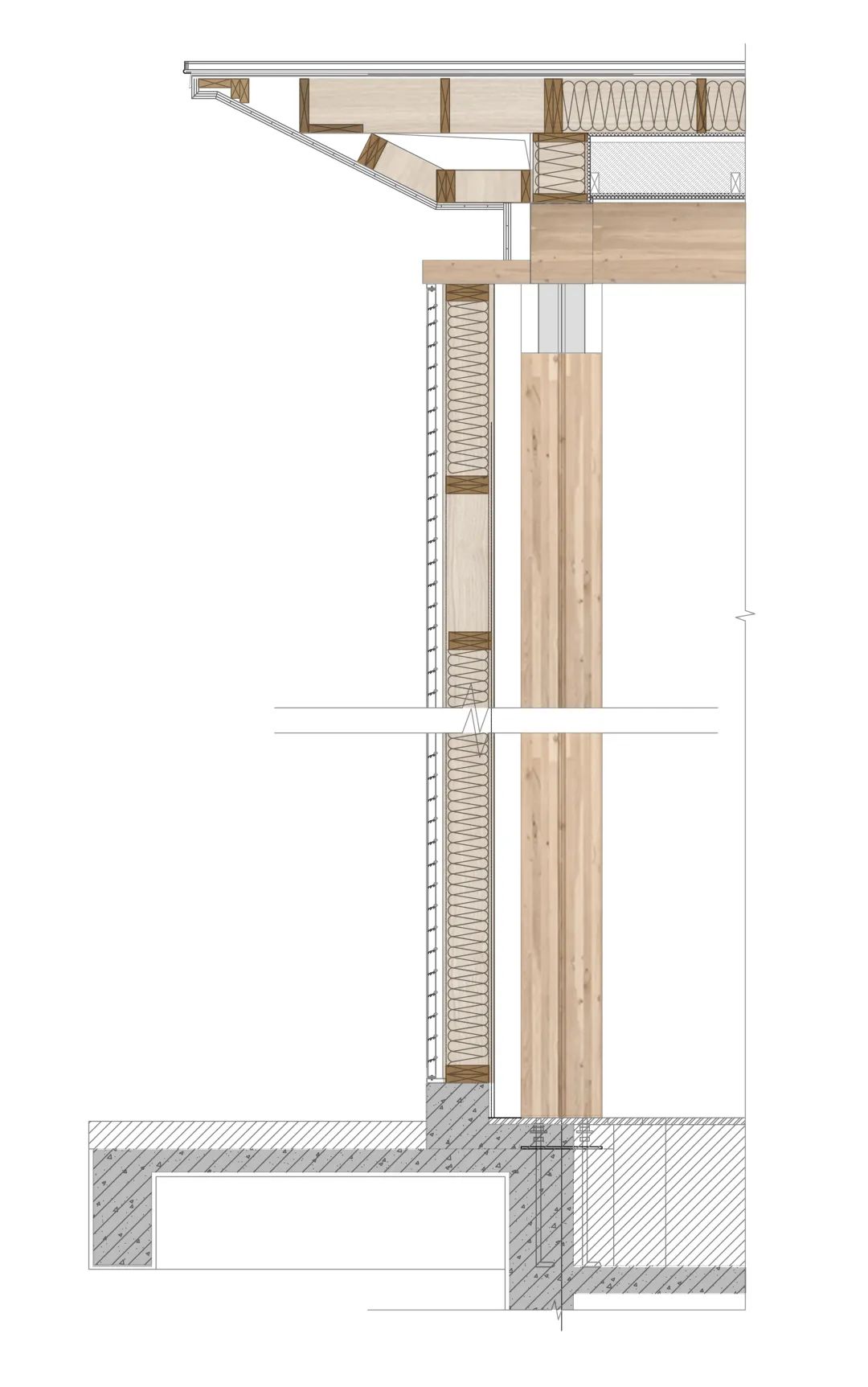 ▲幕墻與木結(jié)構(gòu)連接節(jié)點(diǎn)圖