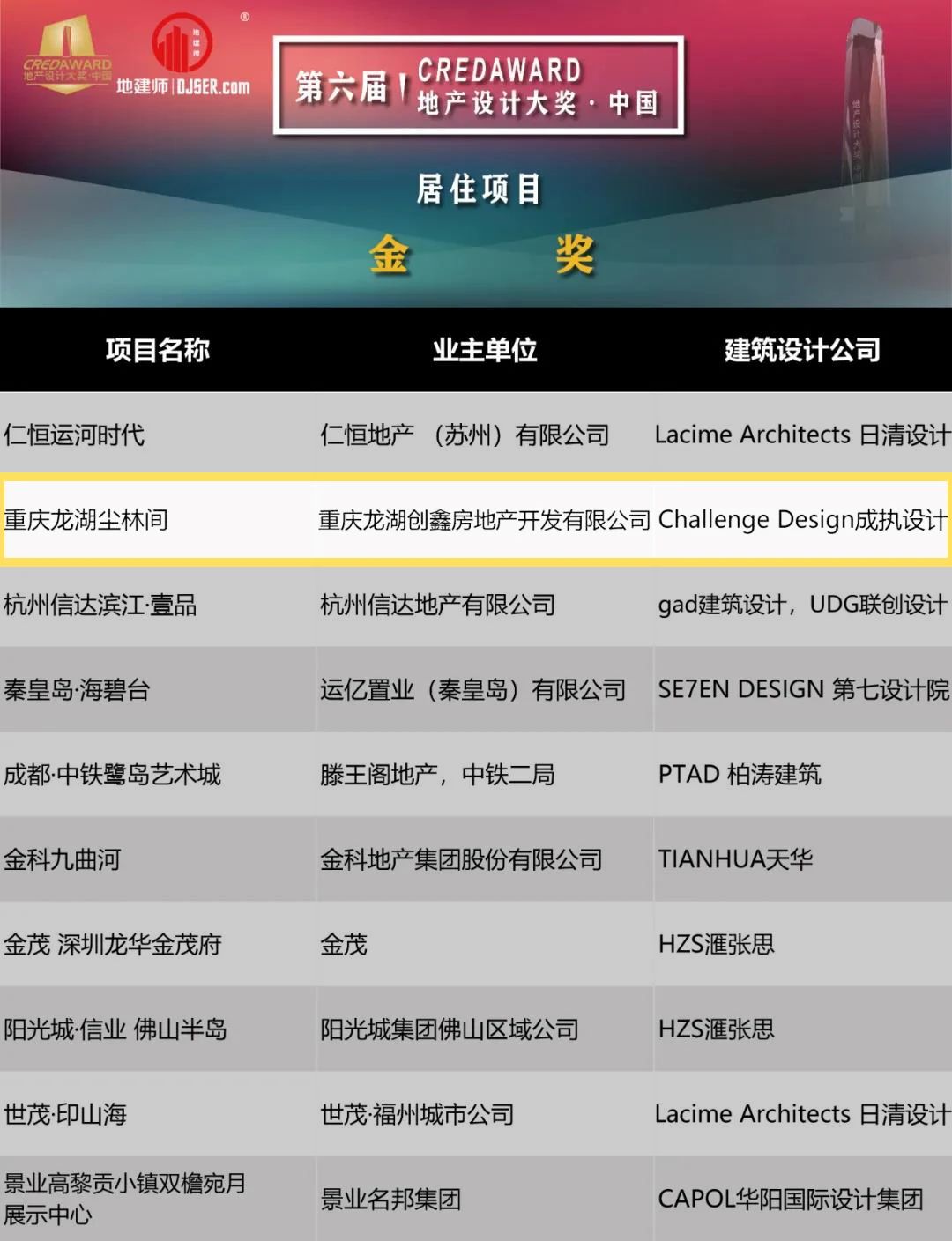 ▲地產(chǎn)設(shè)計(jì)大獎(jiǎng)金獎(jiǎng)榜單