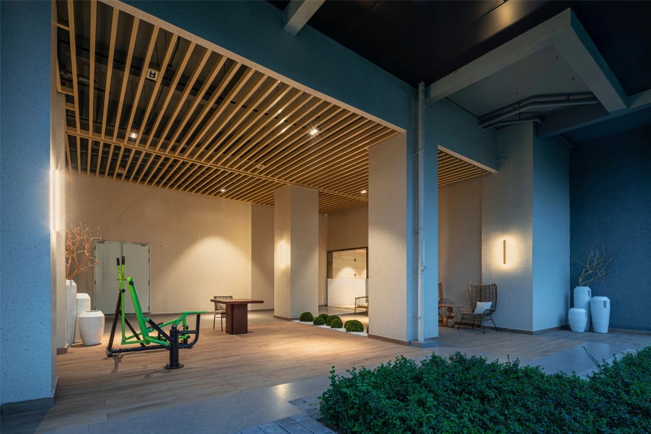 走進場地感受陽光、樹木、花草、流水跟環(huán)境的默契,酒店化的功能又體現(xiàn)出比較高的居住品質。比較平衡的尋找都市生活和自然環(huán)境的關系,找到種回歸生活本質的感受。